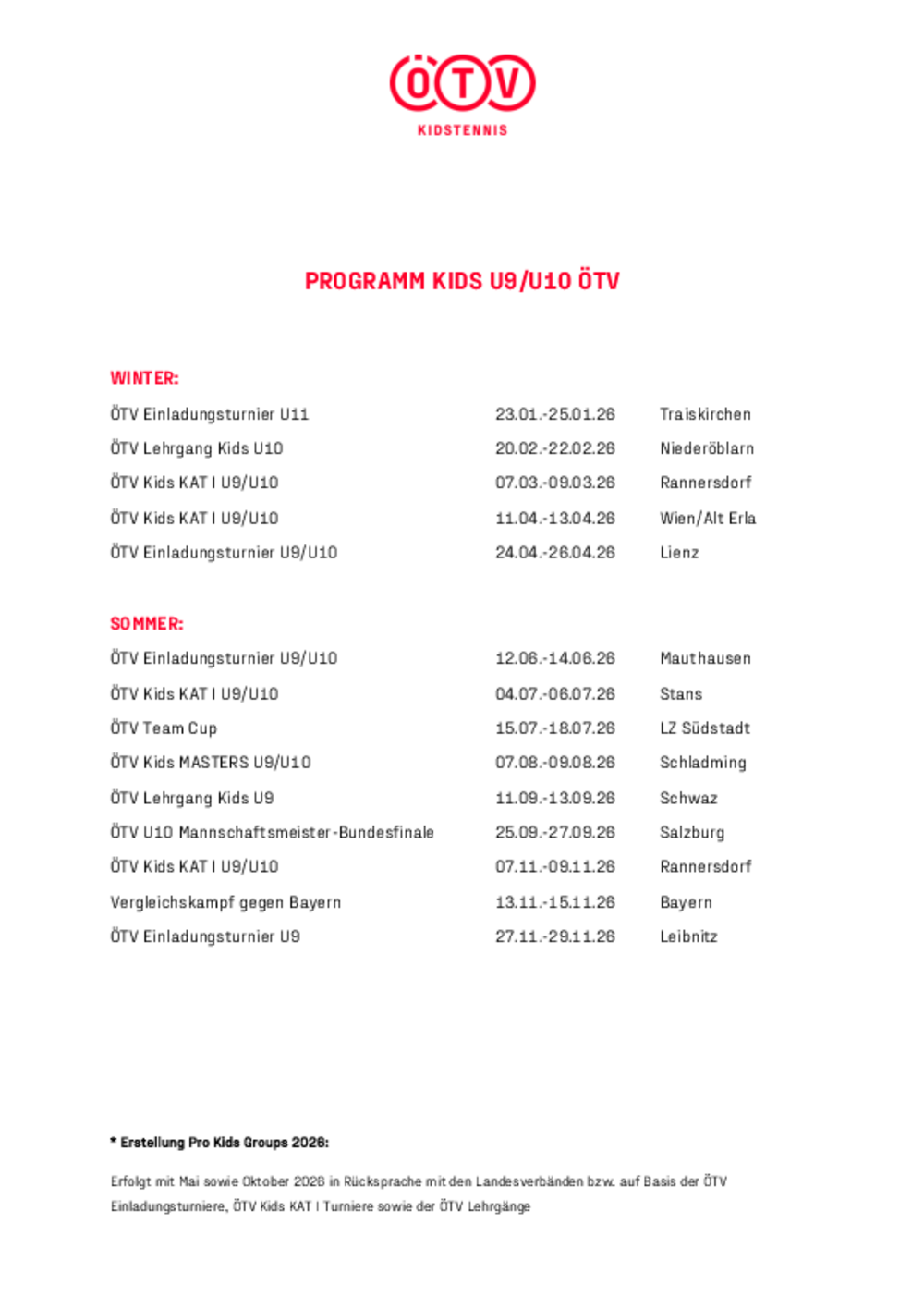 Die ProKids Gruppen werden sowohl vom Landesverband, den OÖTV ProKids, als auch vom ÖTV, den ÖTV ProKids erstellt.