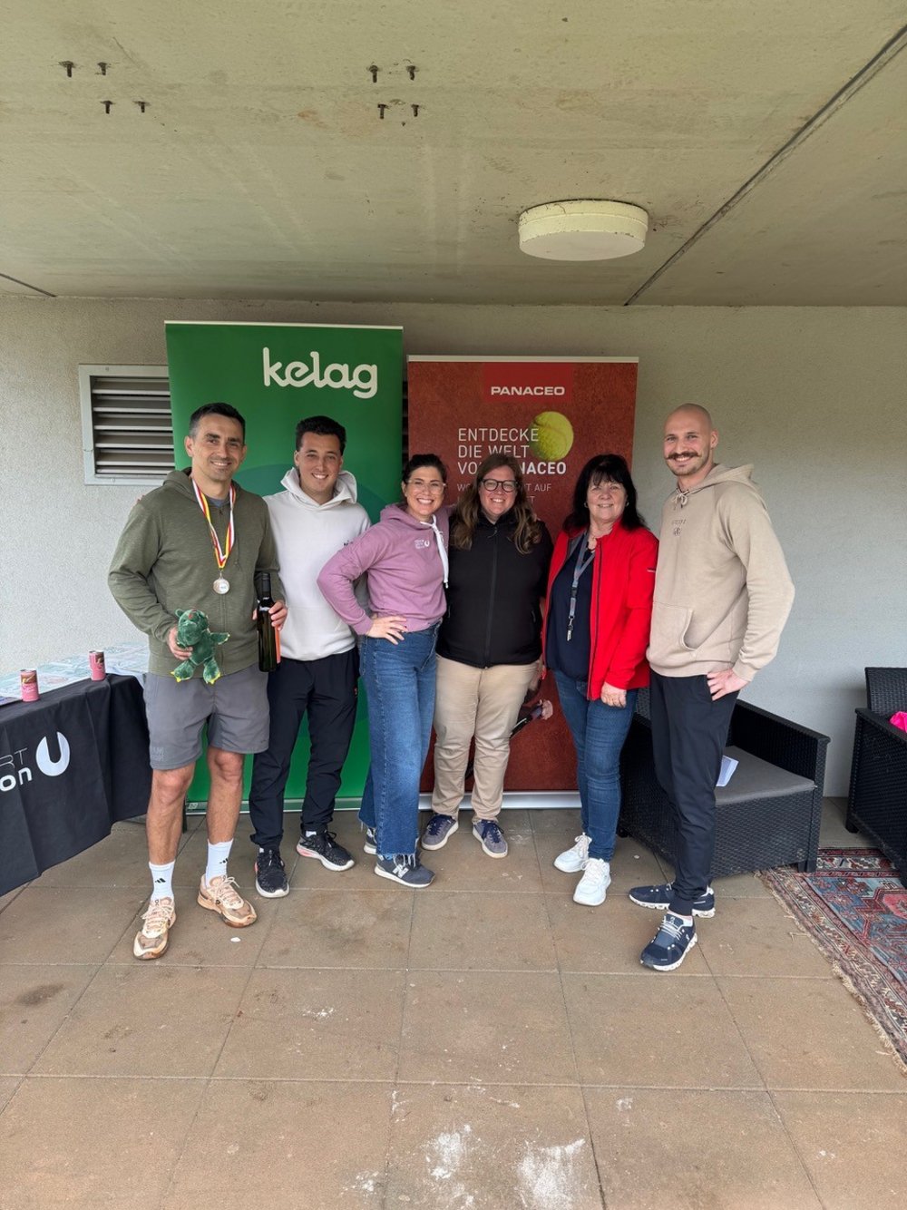 Die Crew der 61. Alpe Adria Senior Trophy, von links nach rechts: Philipp Majdic (2. Herren 40 Einzel, KTV-Pool- und -Turnierreferent), Martin Müller (Sportunion Klagenfurt), Caroline Morokutti (Sportunion Klagenfurt), Anna Stih (ITF-Referee), Anita Feinig (Mitorganisatorin), Nico Steinwender (Physiotherapeut).