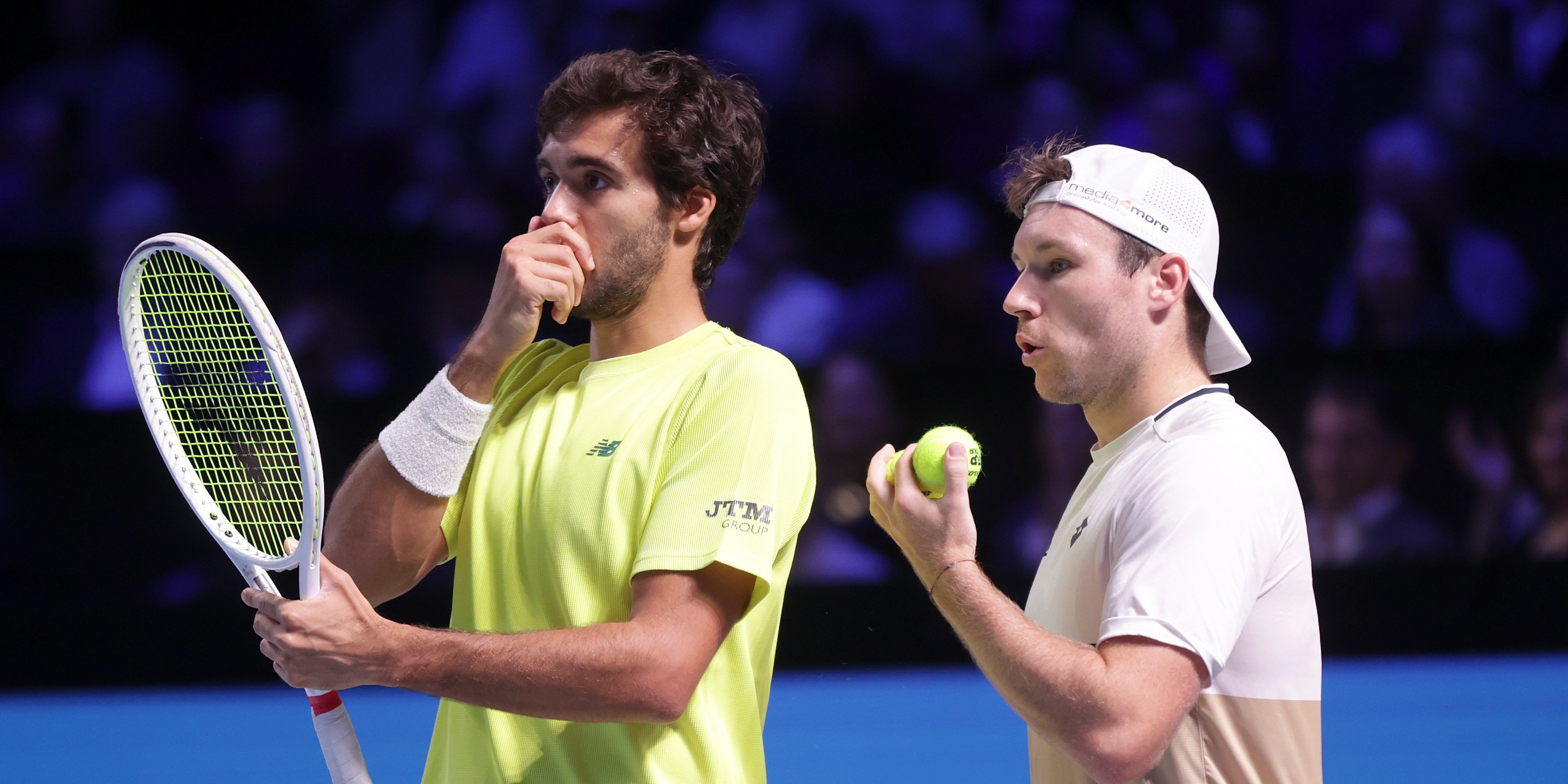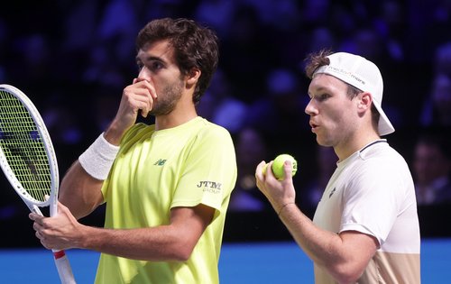 Zuerst die erst im Endspiel gestoppte Titelverteidigung bei den Erste Bank Open in Wien, dann ein Halbfinale beim Rolex Paris Masters: Hinter Lucas Miedler und Francisco Cabral liegen zwei äußerst erfreuliche Wochen. Für den Niederösterreicher (ATP-Doppel 35) und den Portugiesen (ATP-Doppel 23) ist bei ihrer jeweils ersten Semifinalteilnahme bei einer ATP-Masters-1000-Veranstaltung am Samstagabend ganz knapp das Aus gekommen. In der Revanchepartie des mit 1:6, 6:7 (6) verlorenen Wien-Doppelfinales mussten sich die beiden den zweitgesetzten Briten Julian Cash (ATP-Doppel 2) und Lloyd Glasspool (ATP-Doppel 1) erneut geschlagen geben – diesmal aber nach durchwegs hartem Widerstand. Nach rund 1:36-stündigem Kampf zogen Cabral/Miedler mit 4:6, 7:5, 7:10 den Kürzeren, trotz 73:70 in Punkten.