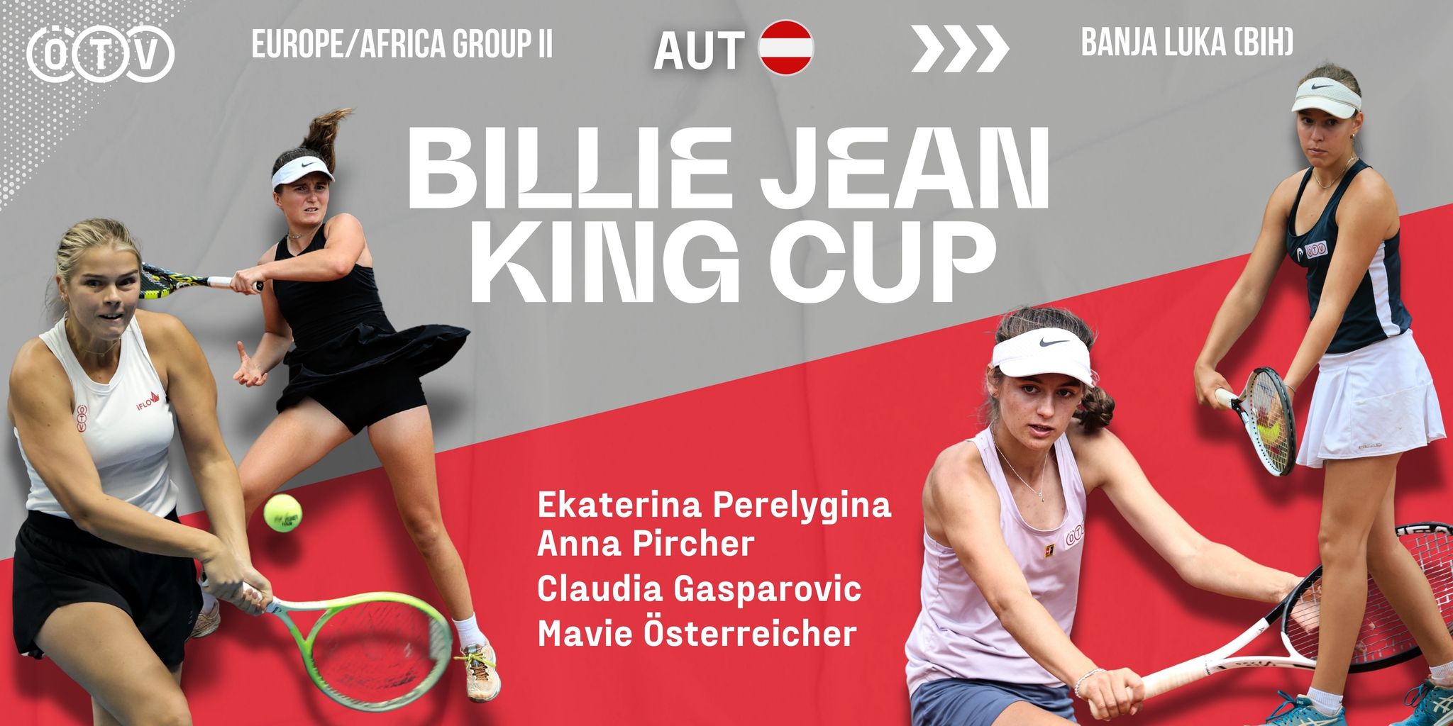 Österreichs Damenteam für die Europa/Afrika-Gruppe II im Billie Jean King Cup 2026 ist fürs Erste fixiert. Die vorläufige Kaderbekanntgabe, pünktlich zur heutigen Deadline am 9. März, ist deutlich beeinflusst durch das zugleich ausgetragene WTA-500-Heimturnier Upper Austria Ladies Linz, bei dem die stärksten der rot-weiß-roten Spielerinnen an den Start gehen werden. Aus diesem Grund stehen mit Ekaterina Perelygina (WTA 572) und Österreichs amtierender Hallenmeisterin Mavie Österreicher (WTA 1097) einerseits zwei Akteurinnen in der Mannschaft, die schon im Vorjahr mit von der Partie waren, allerdings auch zwei Neulinge. Ergänzt wird die vierköpfige heimische Auswahl nämlich durch die regierende U16-Europameisterin Anna Pircher (WTA 893) sowie durch Perelyginas ÖTV-Vertragsspielerinnenkameradin Claudia Gasparovic (WTA 1097). Gespielt wird vom 6. bis 11. April auf Sand im Freien in Banja Luka. Neben Österreich haben die Gastgeberinnen aus Bosnien-Herzegowina sowie Ägypten, Bulgarien, Finnland, Griechenland, Marokko, Nordmazedonien, Südafrika und Zypern genannt. Israel sagte wegen der Kriegswirren im Nahen Osten ab. Gespielt wird zuerst von Montag bis Freitag in zwei Fünfergruppen, am Samstag stehen die Auf- und Abstiegsspiele auf dem Programm. Zwei Nationen steigen auf, vier Nationen ab. Die Auslosung der zwei Gruppen erfolgt erst am Sonntag vor dem ersten Spieltag, also am 5. April.