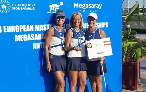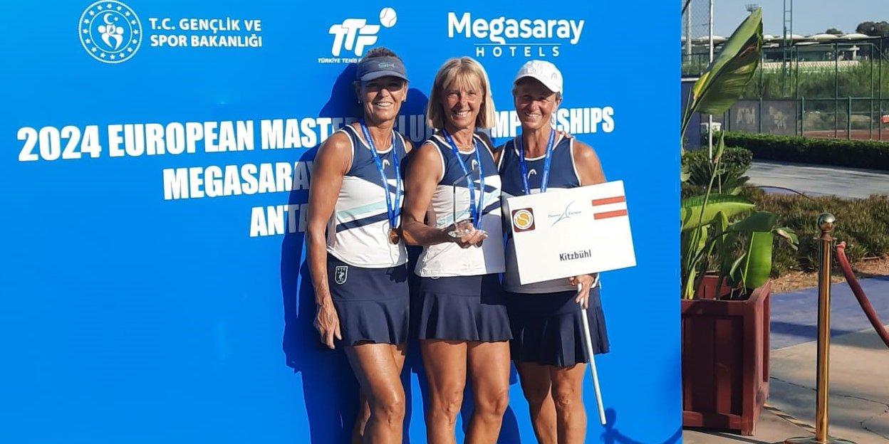 Bereits zum stolzen siebten Mal am Stück hatten sich die Damen 45 des TC Kitzbühel im September den Mannschaftsmeisterschaftstitel in der Senioren-Bundesliga geschnappt. Nun haben die Tirolerinnen auch auf internationaler Ebene aufgezeigt: Die an der Spitze großteils idente Damen-55-Auswahl des TC Kitzbühel hat am Wochenende bei den 2024 European Masters Club Championships, der Senior:innen-Club-EM, beim Megasaray Club Belek nicht nur mit Genehmigung durch den ÖTV teilgenommen, sondern sogar so richtig zugeschlagen. Denn Sylvia Haslgruber, Brigitte Marksteiner und Angela Stöckl sicherten sich in der türkischen Provinz Antalya als erste österreichische Damenmannschaft seit Sparkasse Kufstein im Jahre 1995 Gold bei der Club-Europameisterschaft. 2022 hatten die Damen 45 des TC Kitzbühel bereits einmal den starken zweiten Platz belegt – dieser wurde jetzt noch getoppt.