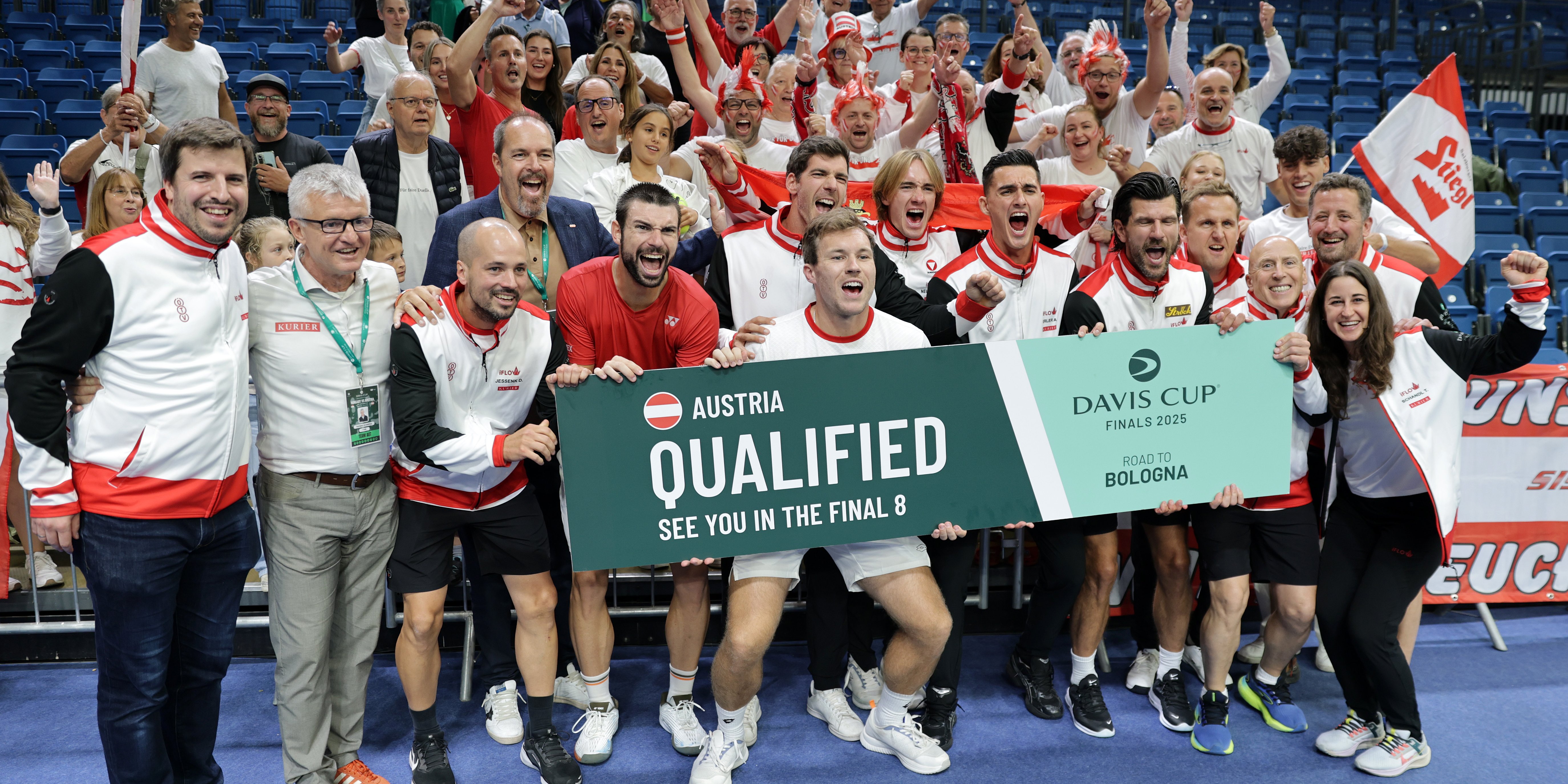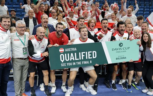 Die ÖTV-Herren waren als Außenseiter in den Länderkampf gegen Ungarn gegangen, das mit Marozsán (ATP 56) und Fucsovics zwei ATP-Top-60-Einzelspieler besitzt. Umso mehr sorgte der Coup für riesige Begeisterung im rot-weiß-roten Lager um ÖTV-Vizepräsident Jürgen Roth, ÖTV-Sportdirektor und -Davis-Cup-Teamkapitän Jürgen Melzer sowie ÖTV-Geschäftsführer Wirtschaft Thomas Schweda. Schließlich ist es für die österreichische Nationalmannschaft doch ein historisches Erfolgserlebnis. Erst zum insgesamt fünften Mal zählt man zu den Top Acht der Welt, zum ersten Mal seit dem Jahre 2012 – damals noch mit Melzer in aktiver Rolle als Spieler. Auf wen seine Schützlinge beim Finalturnier im Norden von Italien im Viertelfinale treffen, wird sich schon am Mittwoch erweisen: Da erfolgt um 12:00 Uhr auf dem Piazza Maggiore von Bologna die Auslosung. Hochkarätige Gegnerschaft ist dem KURIER Austria Davis Cup Team dabei natürlich gewiss, angeführt von den als Titelverteidiger direkt qualifizierten gewesenen Hausherren aus Italien. Aber auch Nationen wie Argentinien, Deutschland und Frankreich haben ihre Plätze unter den letzten Acht bereits gebucht. Die vier weiteren Viertelfinalisten entscheiden sich erst im Laufe des Wochenendes.
