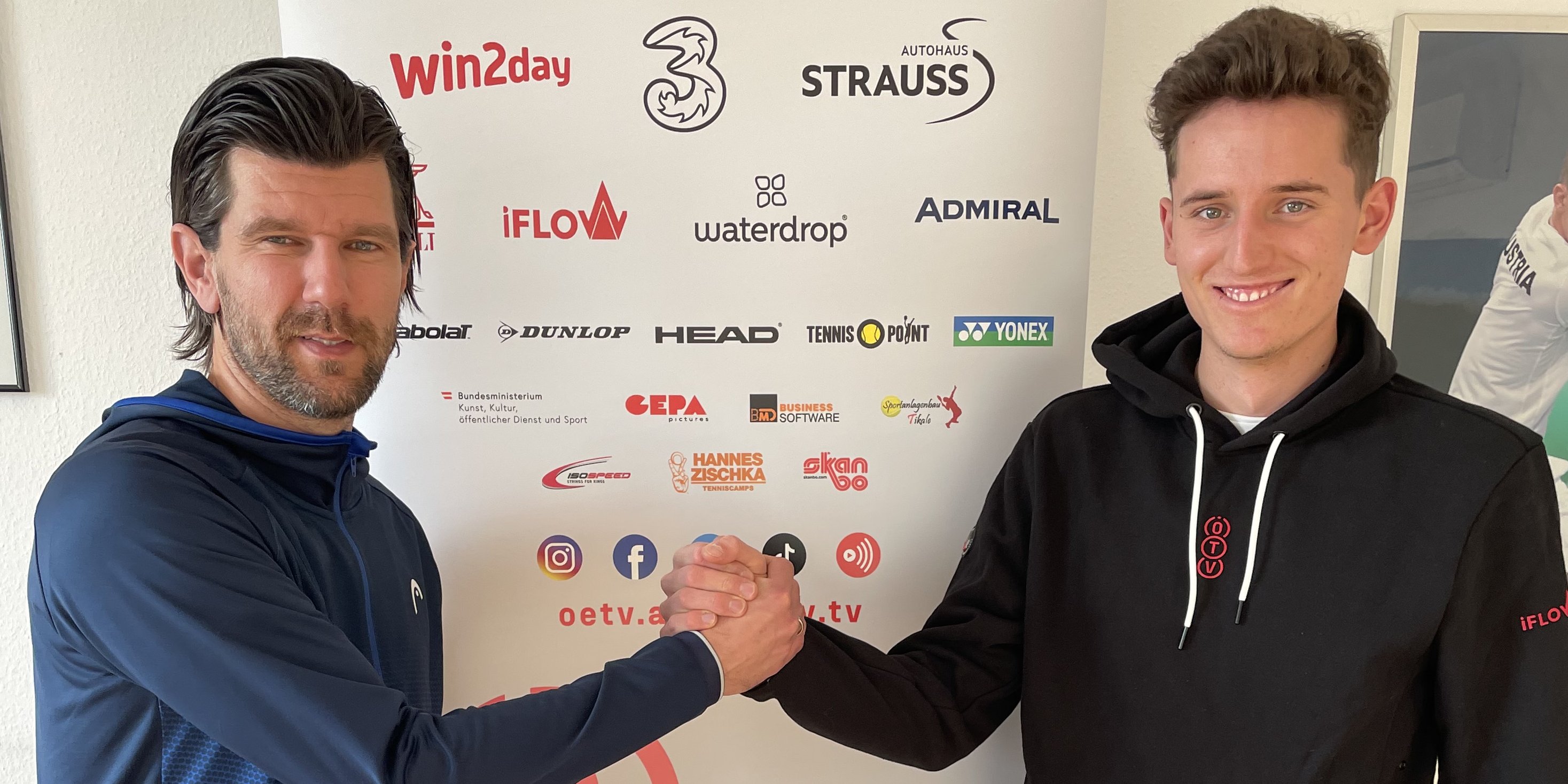 Auf eine gute Zusammenarbeit: Dominik Hutterer (rechts) ist das neueste Teammitglied von ÖTV-Sportdirektor Jürgen Melzer (links).