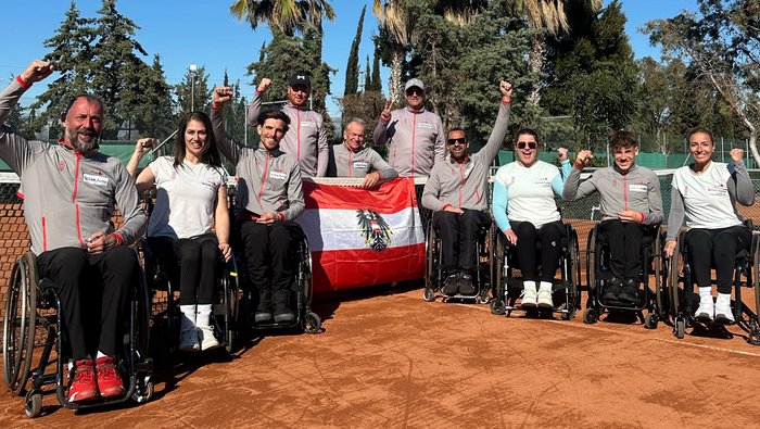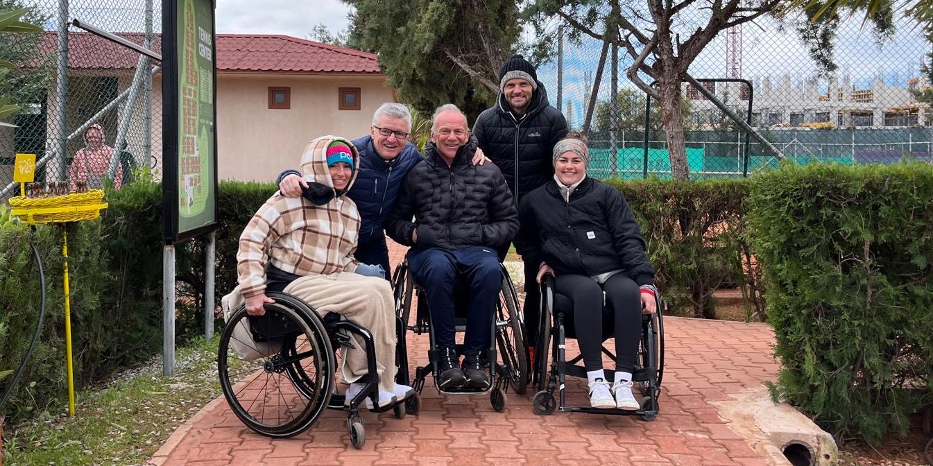 Geschäftsführer Wirtschaft Thomas Schweda (2. von links) vertrat den Österreichischen Tennisverband bei der Tennis-Europe-Generalversammlung in Belek – und feuerte vor Ort auch gemeinsam mit ÖTV-Inklusionsleiter Stefan Schuh (4. von links) die heimischen Rollstuhltennisasse an.