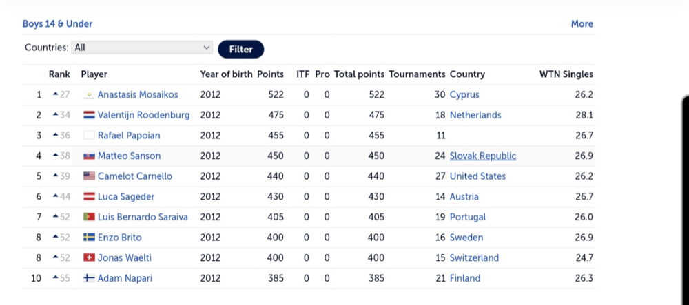 TOP 10 - U14 Europa Rangliste