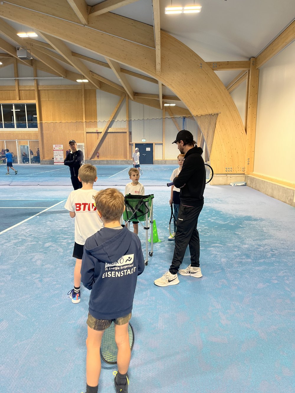 Munter weiter geht’s mit Jürgen on Tour 2023/2024! Nach dem WTV am 21. November, dem STV am 24. November, dem NÖTV am 4. Dezember, dem KTV am 12. Dezember und dem STTV am 9. Jänner hat ÖTV-Sportdirektor und -Davis-Cup-Kapitän Jürgen Melzer am Dienstagnachmittag nun dem Nachwuchs des Burgenländischen Tennisverbands einen Besuch abgestattet. Ort des Geschehens war diesmal Neusiedl am See, wo erst am 1. Jänner 2024 die neue Tennishalle „Tennis Neusiedl am See“ eröffnet worden war.