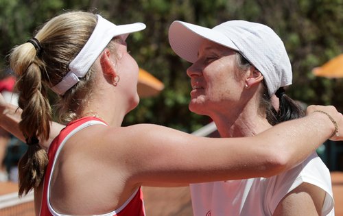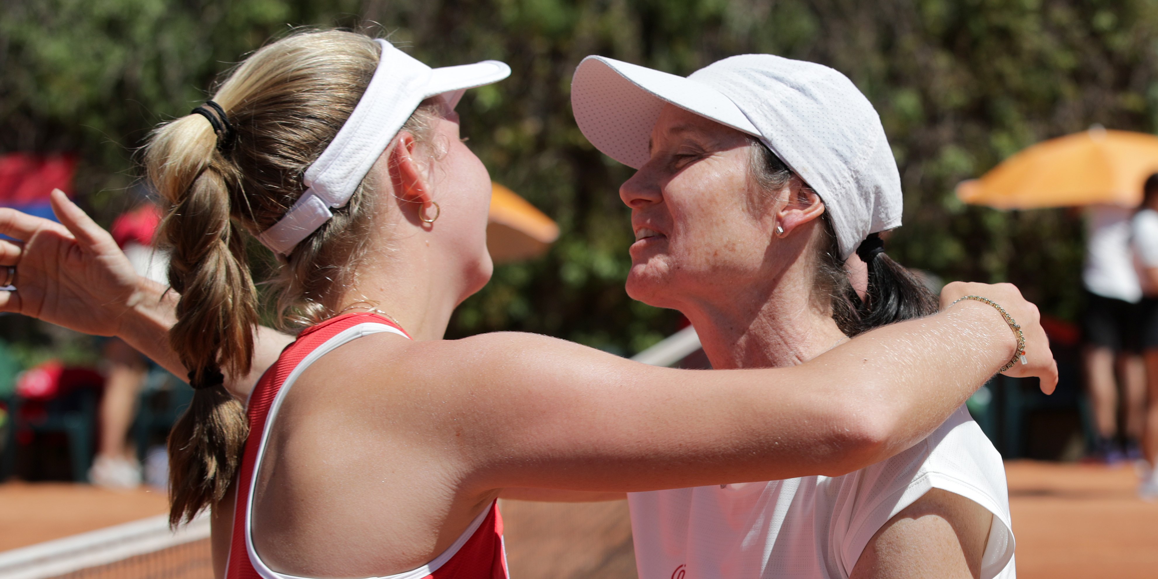ÖTV-Sportkoordinatorin und -Billie-Jean-King-Cup-Kapitän Marion Maruska (rechts) freut sich mit Sinja Kraus über das Erreichen eines echten Meilensteins.