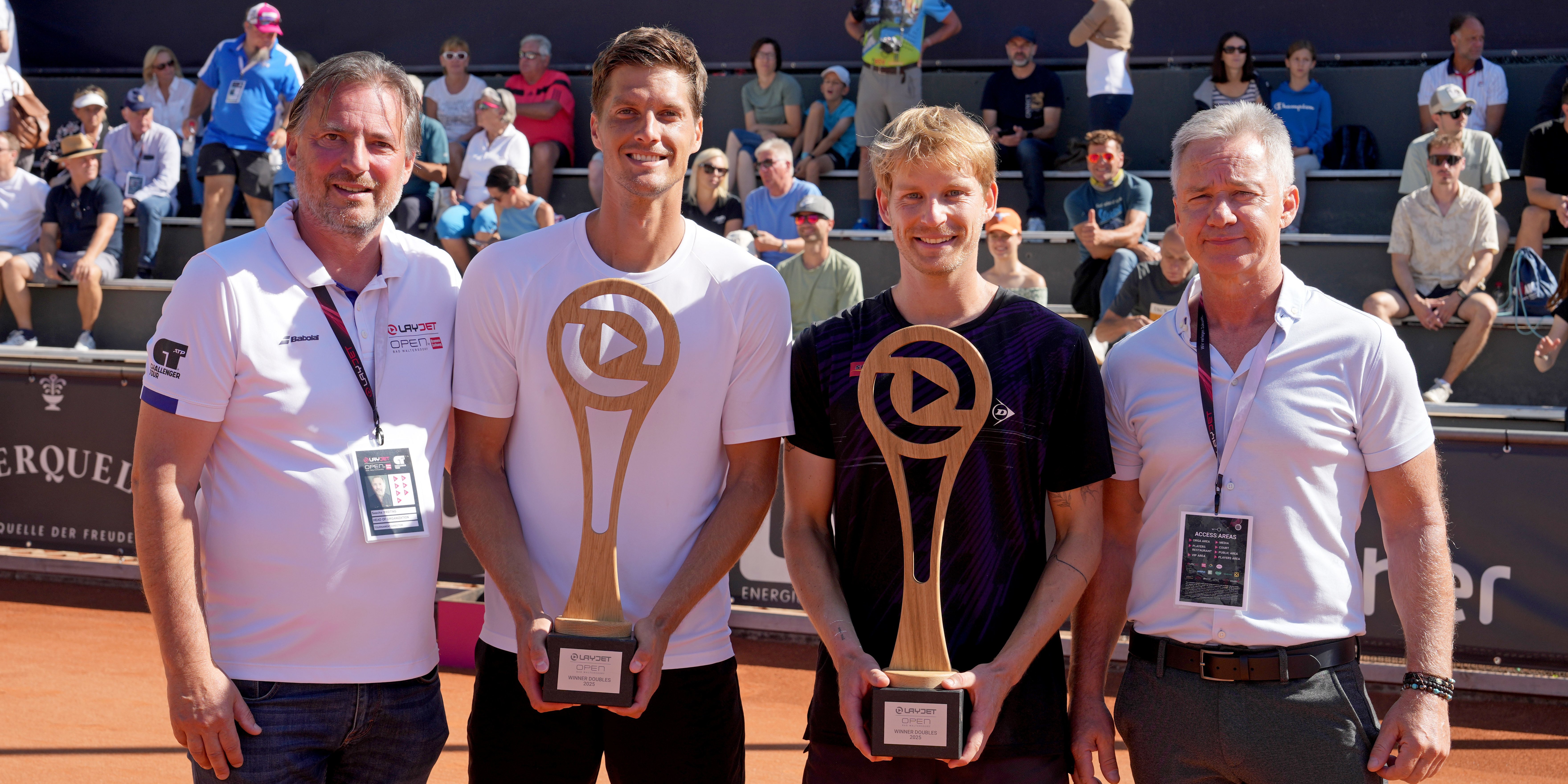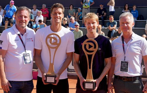 Doch noch ein österreichischer Sieg bei den LAYJET-OPEN im Sportaktivpark Bad Waltersdorf! Der Burgenländer David Pichler (ATP-Doppel 110) gewann mit seinem kroatischen Partner Nino Serdarusić (ATP-Doppel 194) am Samstag das Finale des Doppelbewerbs glatt in zwei Sätzen und sicherte sich damit seinen vierten Turniersieg des Jahres. Die beiden setzten sich gegen die tschechische Paarung Jiri Barnat (ATP-Doppel 192) und Filip Duda (ATP-Doppel 178) mit 6:3, 6:3 durch. Je ein durchbrochener Aufschlag in den beiden Sätzen reichte der österreichisch-kroatischen Paarung, um den zweiten gemeinsamen Erfolg dieses Jahres, nach dem Turniersieg in Sofia im August, einzufahren.