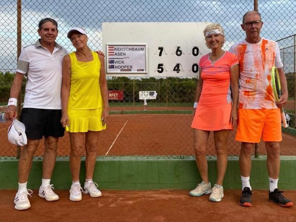 Auch das rein österreichische Mixed-Doppel 70+ mit Europameisterin Kerschbaum und Doppelpartner Asen zeigte auf der spanischen Insel Können und Nervenstärke. Nach einem glatten 6:3,-6:2-Viertelfinalsieg über das topgesetzte Duo Ann Stanley (USA) und Andrew Stanley (Großbritannien) besiegten die beiden zuerst die viertgereihten Marjory Love und Nial Sweeney (beide Großbritannien) beim 4:6, 6:2, 10:4 ebenso erst im Match Tiebreak wie im Finale auch die zweitgesetzten Caroline Glaszmann und Bruno Renoult (beide Frankreich) beim 2:6, 6:3, 10:8.