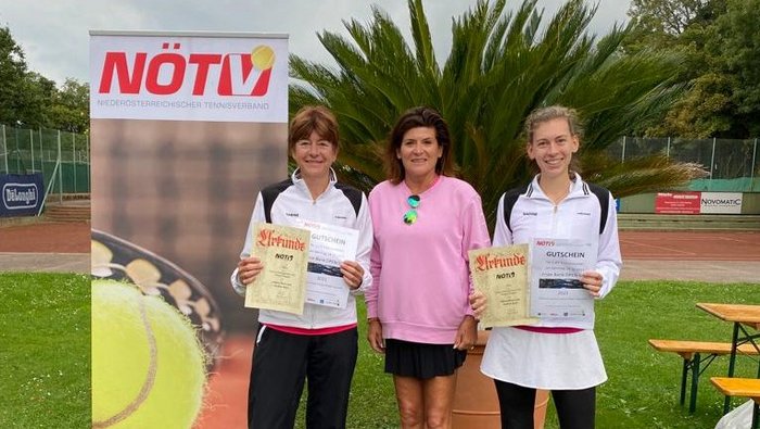 Die Gewinnerinnen des Damendoppel Generationenturnieres 2023, Fam. Wakolbinger aus Baden, in Niederösterreich waren vom NÖTV zum Billie Jean King Cup eingeladen.