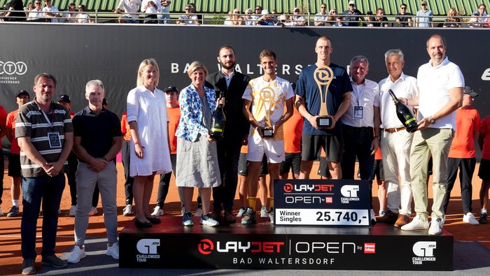 Das zweite ATP-125-Challenger-Turnier in Bad Waltersdorf war ein voller Erfolg. Nicht nur sportlich wurde einmal mehr Weltklassetennis mitten im oststeirischen Thermen- und Vulkanland geboten. Ein Blick auf die wichtigsten Zahlen zeigt, dass hier auch das gesamte Rundherum die Bezeichnung Weltklasse verdient: Gespielt wurden 62 Einzel- und Doppelpartien innerhalb von acht Tagen, mehr als zehn Tonnen Sand und 36 Kubikmeter Hackschnitzel waren wegen des schlechten Wetters notwendig, knapp 6000 Tennisbälle wurden benötigt, rund 600 m2 Branding-Material wurden fixiert, 600 Akkreditierungen ausgestellt, dutzende Helferinnen und Helfer waren im Platzwart-, Fahrer- und Players-Desk-Team im Einsatz, dazu 36 Linienrichterinnen und Linienrichter und 50 Ballkinder (hatten schulfrei). Verlegt wurden 3500 Meter Datenkabel, ein Kilometer Kabel für den guten Ton, um 30 Stunden ORF-Liveübertragung und das Streaming aller Spiele auf dem Center Court auf ÖTV TV möglich zu machen. Veranstalter Sascha Freitag und das gesamte Bad-Waltersdorf-Team wollen für nächstes Jahr noch mehr: „Weil wir immer besser werden wollen, haben wir bereits zwei A4-Seiten voll mit Verbesserungsvorschlägen für 2025.“